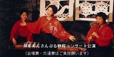 「邦楽あんさんぶる秋桜」は、小さな子ども達にも「日本の音を聞いてもらい、豊かな情操を育てたい!」そんな思いを持った国内外で活躍中の一流メンバーにより結成されたグループです。(尺八/加藤丈山 箏/谷澤千早)地域の幼稚園や保育園でも大好評を博しています。