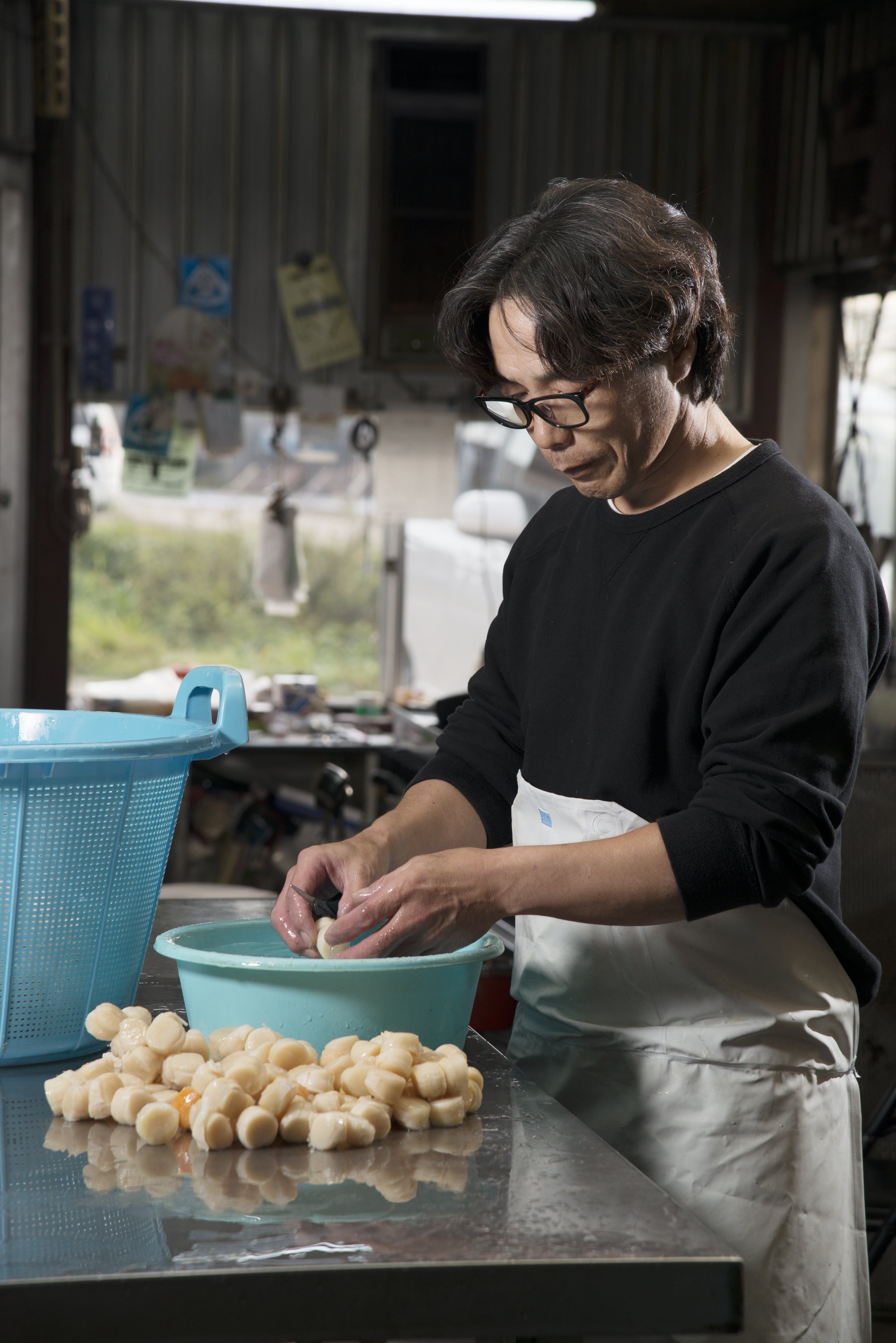●「油断していると指を挟まれそうになるくらい元気なホタテで刺身、酒蒸し、フライにして味も文句無しです」