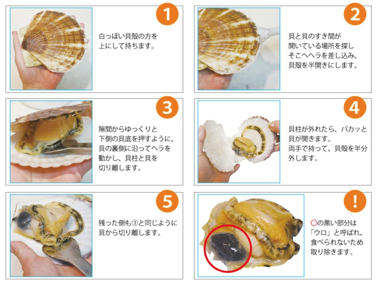殻付きホタテの身の取り方について