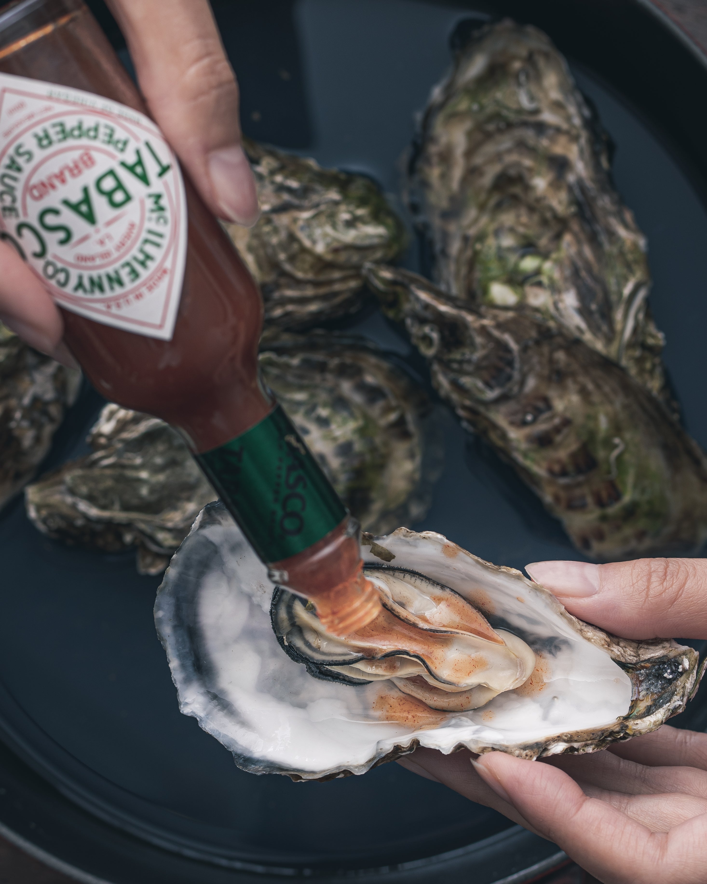2品目は蒸し牡蠣にしてタバスコをかけて