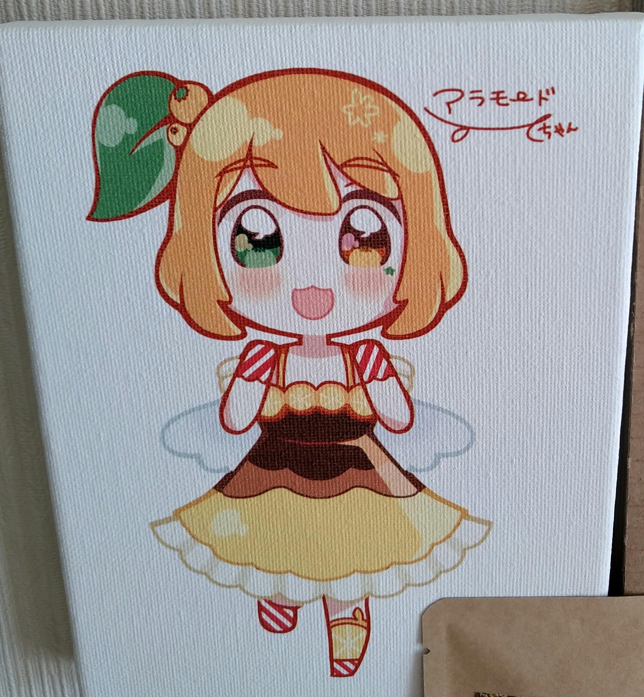 (1)キャンバスに描いたアラモードちゃんとオレンジ博士のレプリカ
