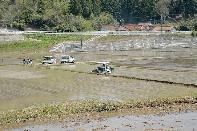 北は日本海、南は瀬戸内海に流れ込む分水嶺でとても水がきれいな場所で、オオサンショウウオの生息する街(村?)です。しかし、農業には不利なところで田んぼ一枚一枚が小さくまた変形しているところが多く、最近話題のスマート農業(自動で動くトラクター等)の実践は難しいです。機械の運転はおじいちゃんのテクニックでカバーです(笑い)。そんな地域ではありますが、標高が高く、美味しい(個人差があります)お米が生産できる地域となっております。