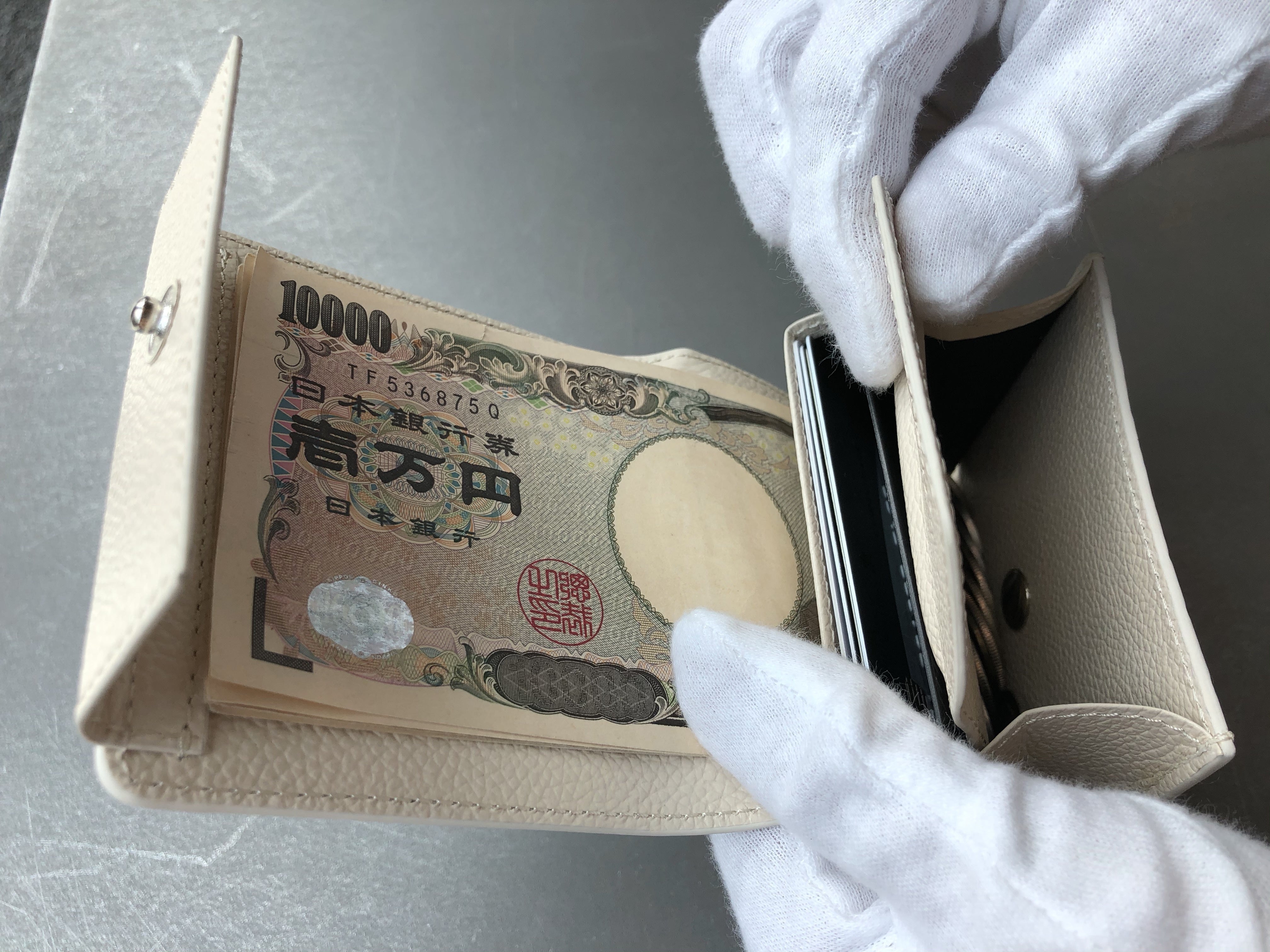 お札はコインケース裏に差し込む仕様に仕上げています。お札の差込口はスムーズに出し入れ可能。