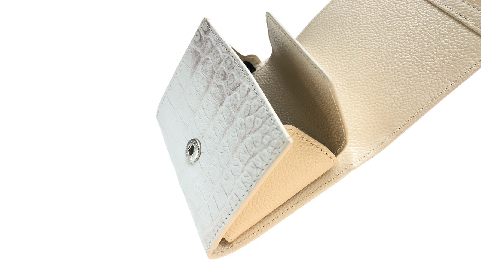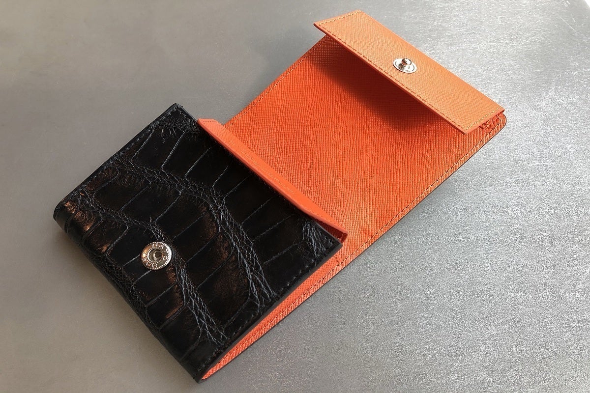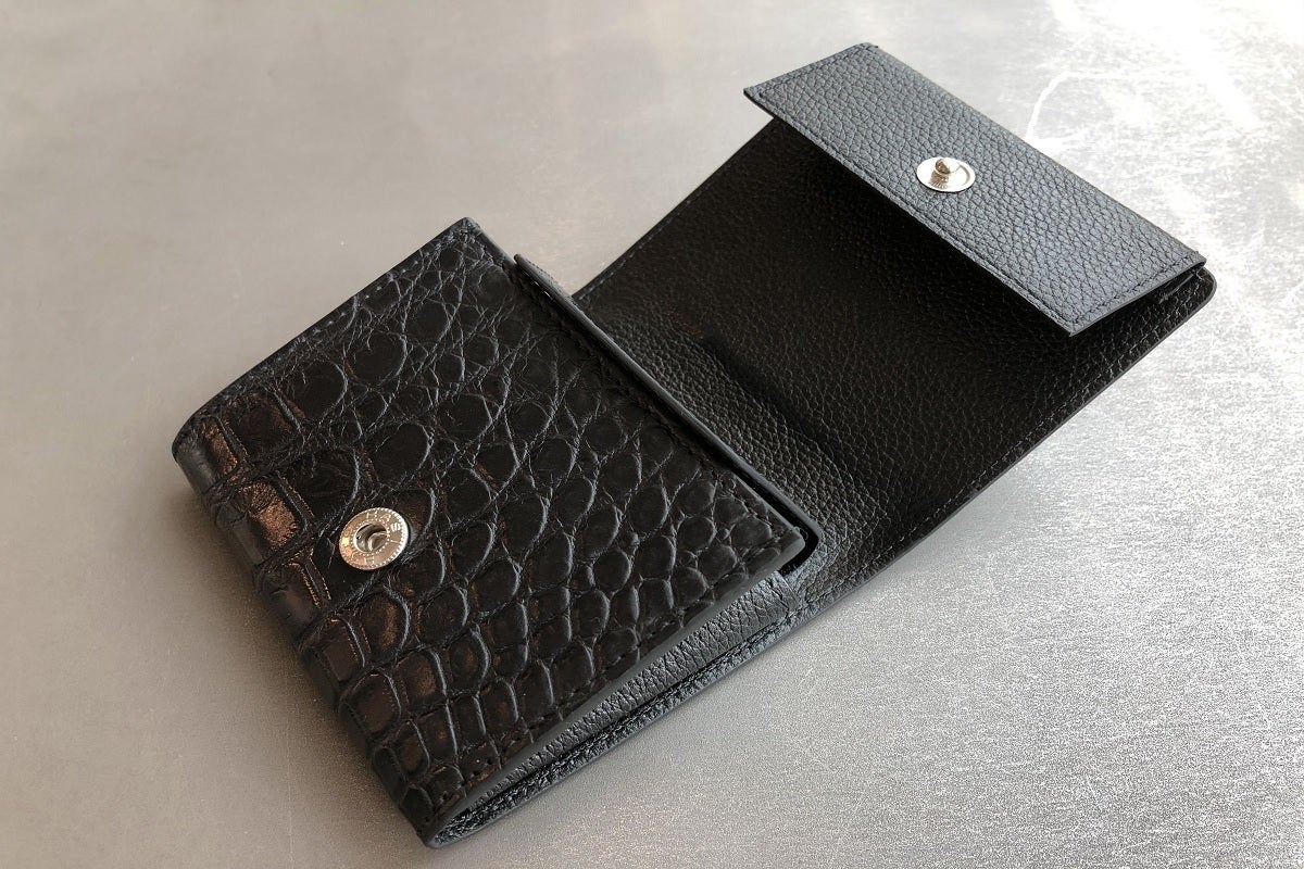 クロコダイル革製品の素晴らしさだけでなく、収納量とサイズのBalanceを考えて製作されたMinimal二つ折り財布はいかがでしょうか。