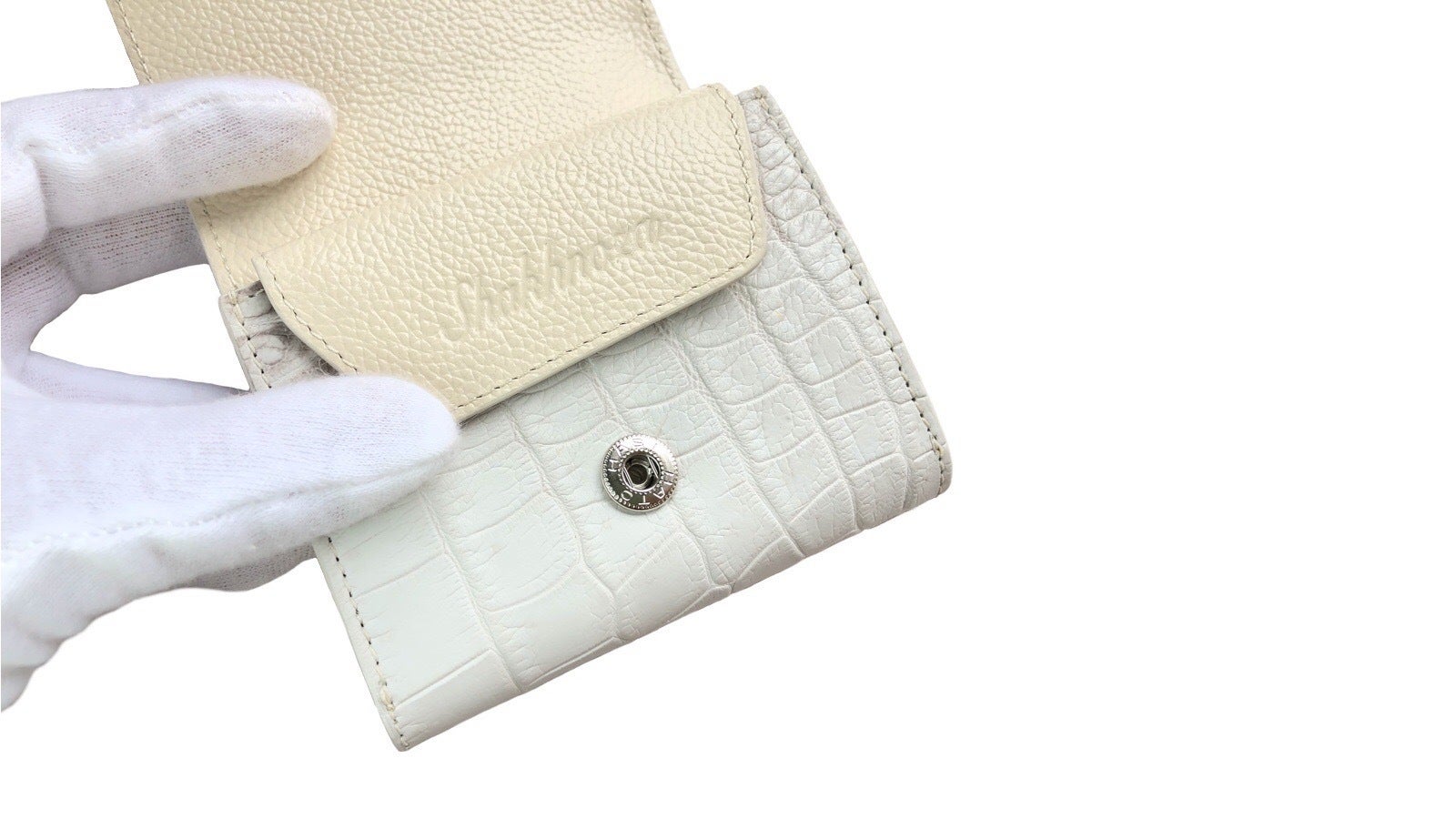 2021/04/10 09:44Original Brand "Shakhnoza"Smartかつルックスの良いWallet上質なクロコダイル革と洗練されたコンパクトWallet。貫禄ある大人の男を演出できるクロコダイルWalletでよりMinimalに、求めるカタチはSmartかつルックスのいいWalletで決まり。美しい所作を求める女性には「革のダイヤモンド」と称されるクロコダイル革のMinimal Walletがオススメ。軽量、コンパクトで、収納力&使いやすさをキープ。キャッシュレス化が本格的に進む中でスゴく大事な項目だと思います。そんな理想的なWalletを最高級クロコダイル革で作りました。形は画像でも分かるようにスクエア形状。手のひらに収まる弊社内にて最小のサイズ(横幅9.5cm、縦幅8.5cm、厚み2.5cm)になっています。当該商品は十分な収納が出来、「小さい」を実現したウォレットになっております。文字通りミニマル財布と呼べる二つ折り財布です。【内装&収納力】財布の内側の素材は、上品な発色でとても柔らかいタイ製牛革を使用しています。お札15枚、カード5枚、小銭20枚程度。小銭を少量にすることでカード約8-10枚とその分収納可能。そして厚さ約3.0cmを実現します。外側にカードホルダーが一か所。定期券等のICカードを収納するのがオススメです。日頃から使用するカードを収めておくのに便利なカードポケットになっています。お札はコインケース裏に差し込む仕様に仕上げています。お札の差込口はスムーズに出し入れ可能。左利きの方がご使用いただけるよう垂直にも取り出せるようになっています。フラップにより仕切られたカードケースとコインケース。同じ収納スペースをフラップで仕切っている為、限られたスペースを最大限に活用することでコンパクトさを維持することが出来ます。小銭入れは開口部が大きく開き、小銭の取り出しをSmartに行うことが出来ます。小銭入れにホックが無くても小銭が落ちないようになっています。小銭が落ちるのが心配な方はフラップを内側に収納することも可能です。クロコダイル革製品の素晴らしさだけでなく、収納量とサイズのBalanceを考えて製作されたMinimal二つ折り財布はいかがでしょうか。【商品紹介動画】【実演レポート】===================================サイズ: 横幅9.5cm、縦幅8.5cm、厚み2.5cm重量: 約110g素材: (表側)クロコダイル (内装)牛本革、一部生地原産国: タイ王国内側収納: カードホルダー x 2、小銭入れ x 1、紙幣入れ x 1開閉: ホック式===================================クロコダイルの模様は個体差がありひとつとして同じものは無く、全ての商品は異なることご理解いただくようお願い致します。 もっと見る