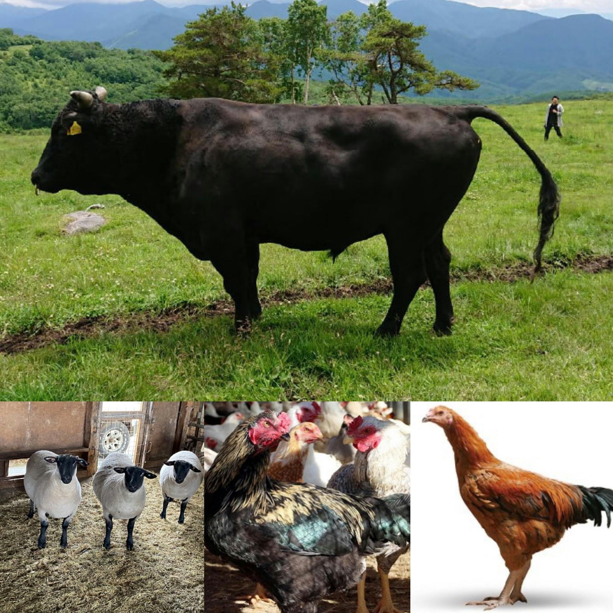 本プロジェクトの取り扱うWAGYUとラムは信州上田菅平高原にある。天空の牧場ダボス牧場伊藤氏が育てる市場流通しないまたは少ない特殊個体を使用しております。WAGYUの基本ベースとして、霜降りの入らない自然で健康的な和牛。日本短角和種×黒毛和種の意図的交雑種、ハイブリッド短黒和牛
