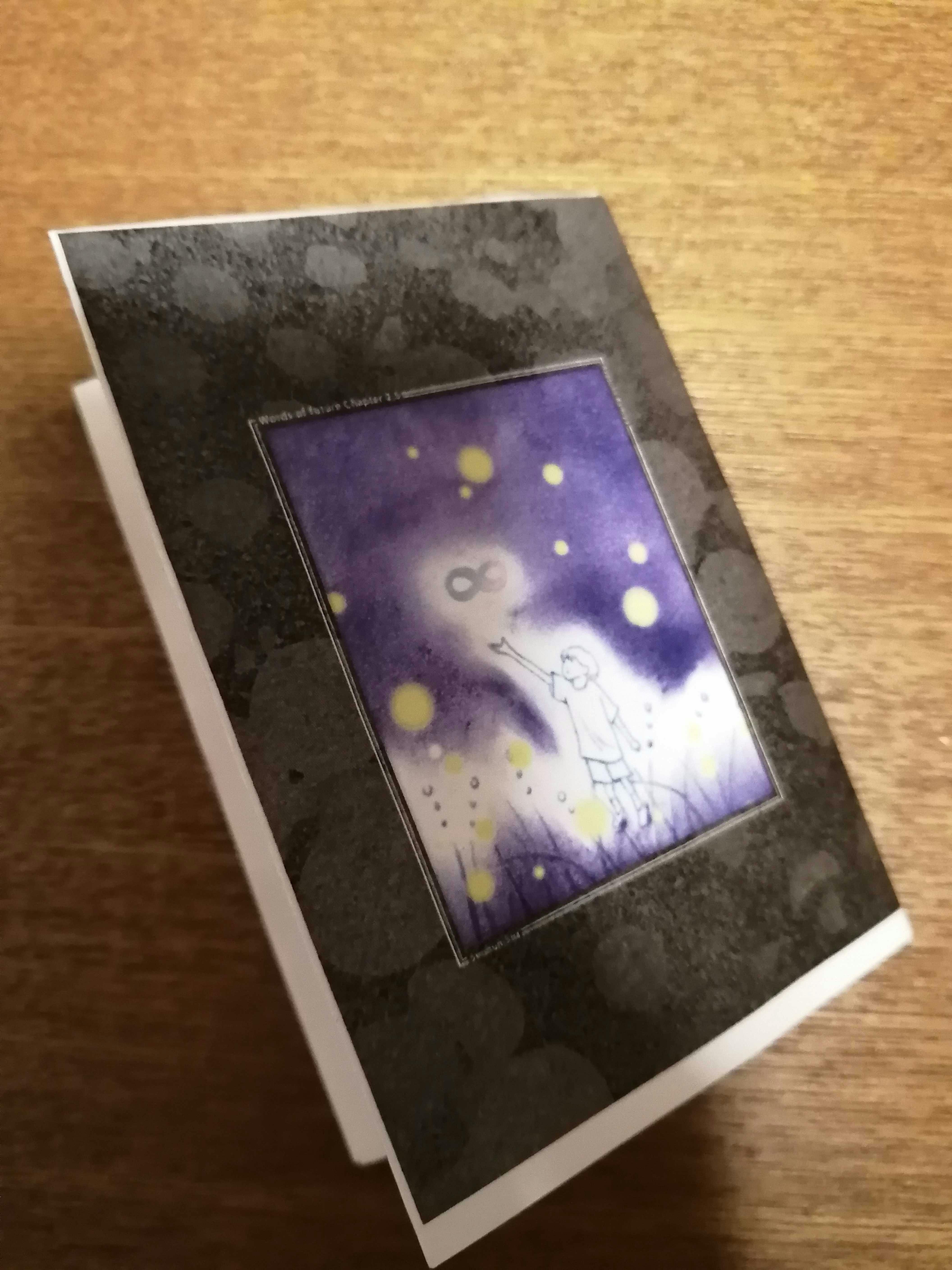 折本とは、A4用紙をご自分で折って作成するちいさな冊子です。(※例として)こちらに本編未収録の『2.5章』のお話を記します。