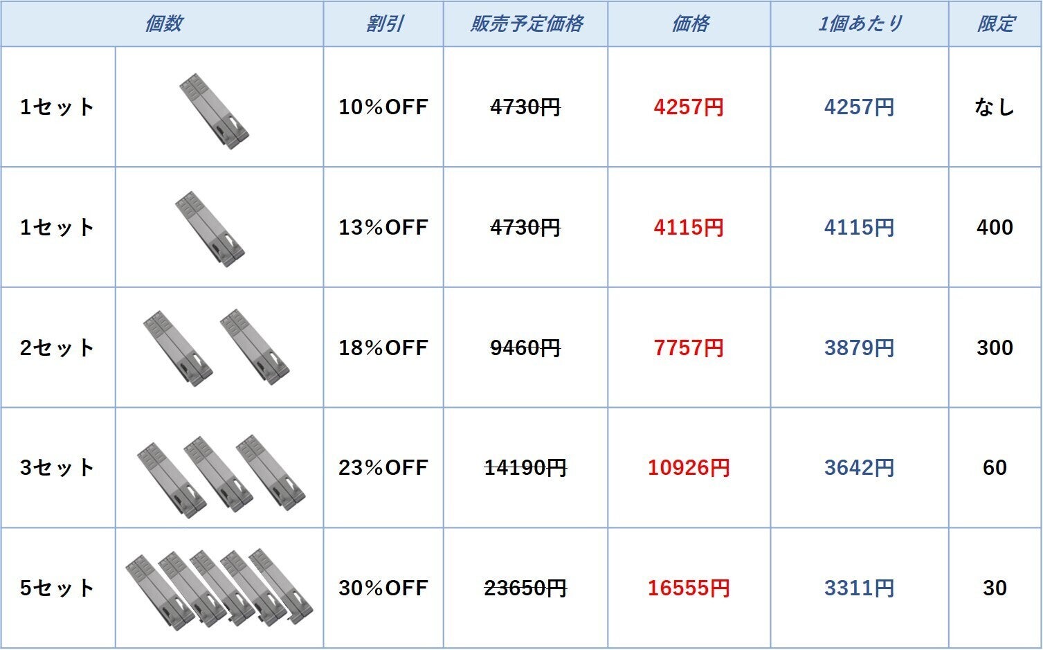 ※本プロジェクトを通して想定を上回る皆様からご支援を頂き、現在進めている環境から量産体制を更に整えることができた場合、正規販売価格が下がる可能性もございます。