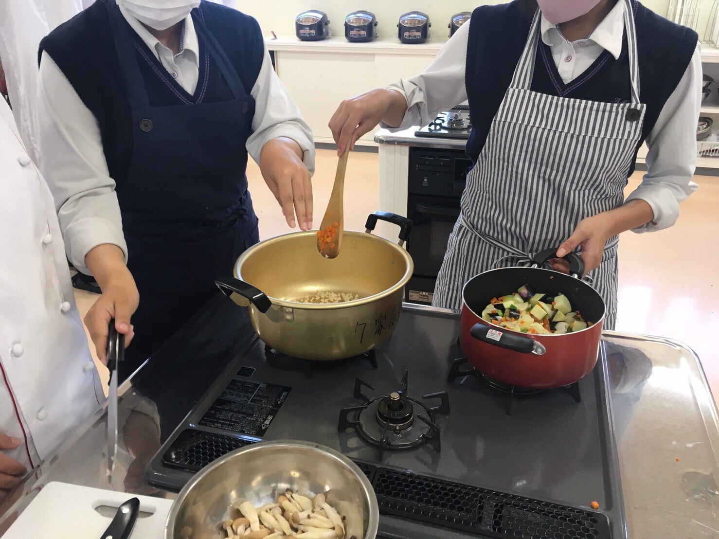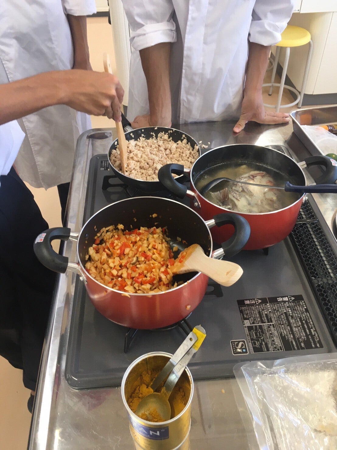 写真は、生徒さんと様々な試作をしている様子です。