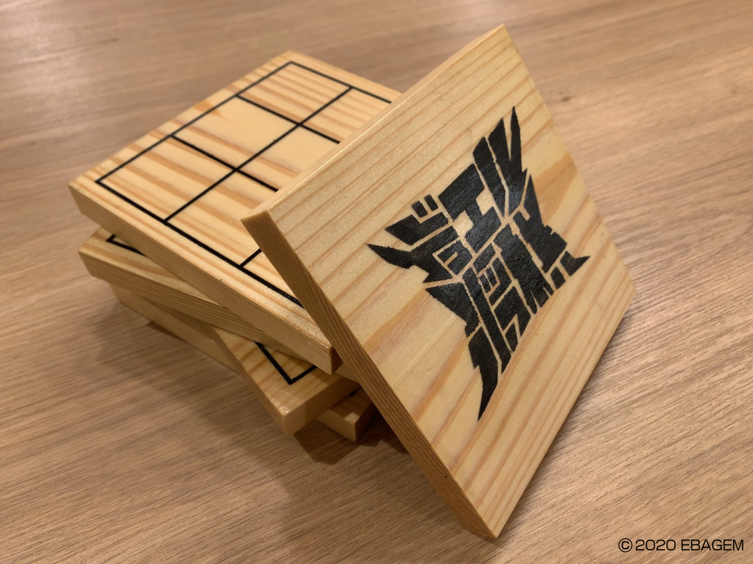 通常、説明書の裏面をプレイ盤として使いプレイをするところ、木製将棋盤を使った、より本格的なプレイが可能です!!