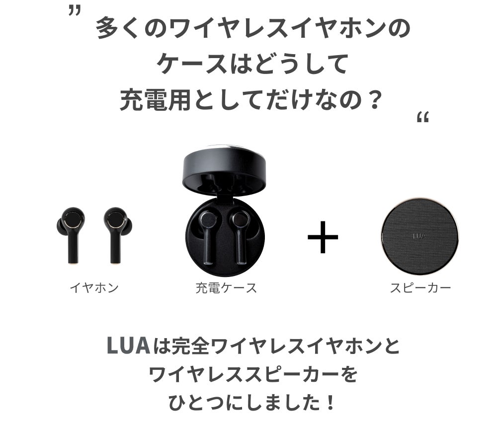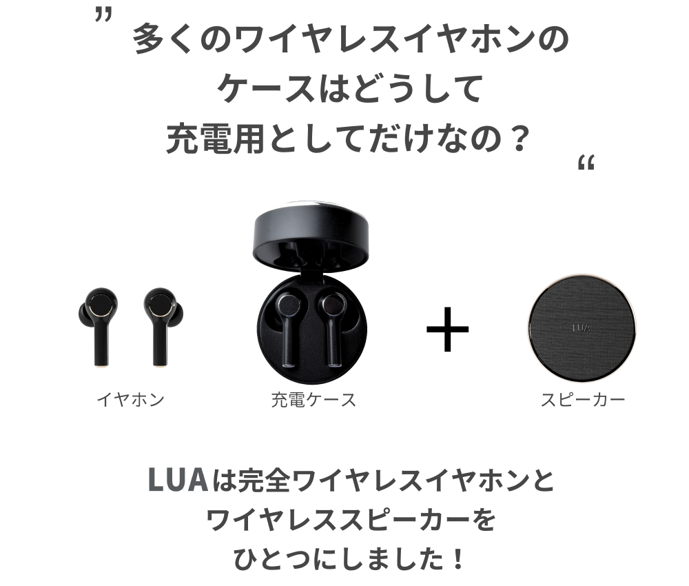 LUAのイヤホンケースは、充電ケースとしてはもちろん、ワイヤレススピーカーとしても楽しむことが出来るこれまでにない革新的なスピーカー内蔵イヤホン充電ケースです。今では欠かすことのできないワイヤレスイヤホンは、多くの方が愛用中だと思いますが、LUAならキャンプなどへ出かける時も、わざわざワイヤレススピーカーを用意したり、うっかりスピーカーを忘れてしまっても大丈夫なんです!
