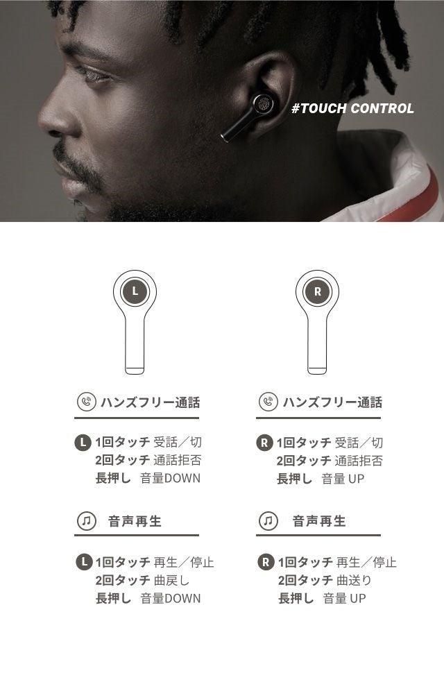 イヤホンのフェースプレート部分はタッチパネルを装備し、スマートフォンを握っていなくても、指で軽くタップするだけで電話、音楽を全てを簡単に操作することができます。