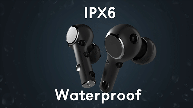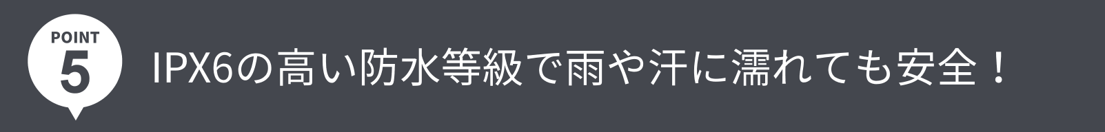 イヤホンを装着したままの激しい運動時の汗や雨の下でも問題ありません。国際電気標準会議が規定しているIPX6対応しており、いかなる方向からの水の強い直接噴流によっても影響を受けない器機として認められています。
