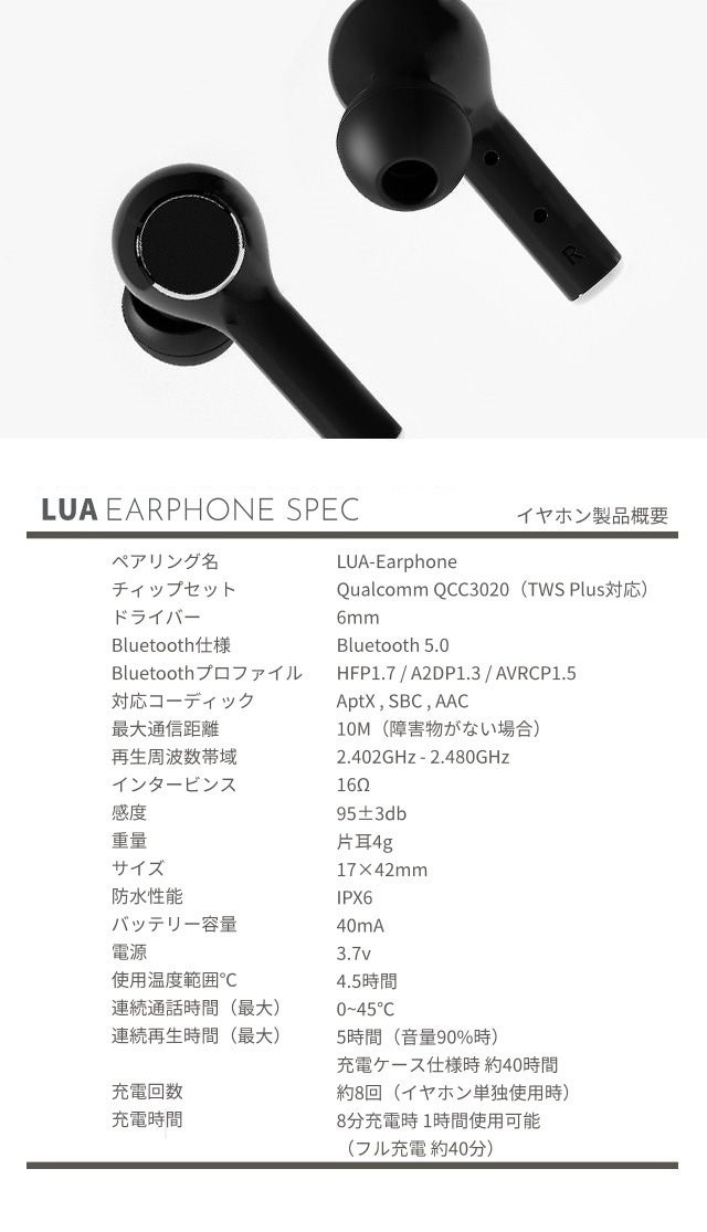 ワイヤレスイヤホンLUA×1 Type-Cケーブル×1 日本語マニュアル×1