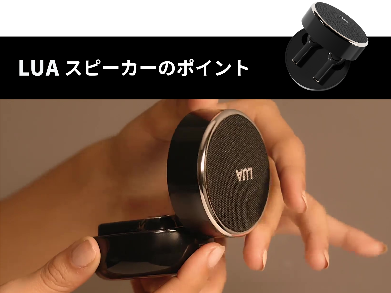 LUAスピーカーは男女を問わず片手で開閉できるほどコンパクトで、すっぽり手に収まる大きさで設計されました。マグネット式でイヤホンが落ちることもありません。