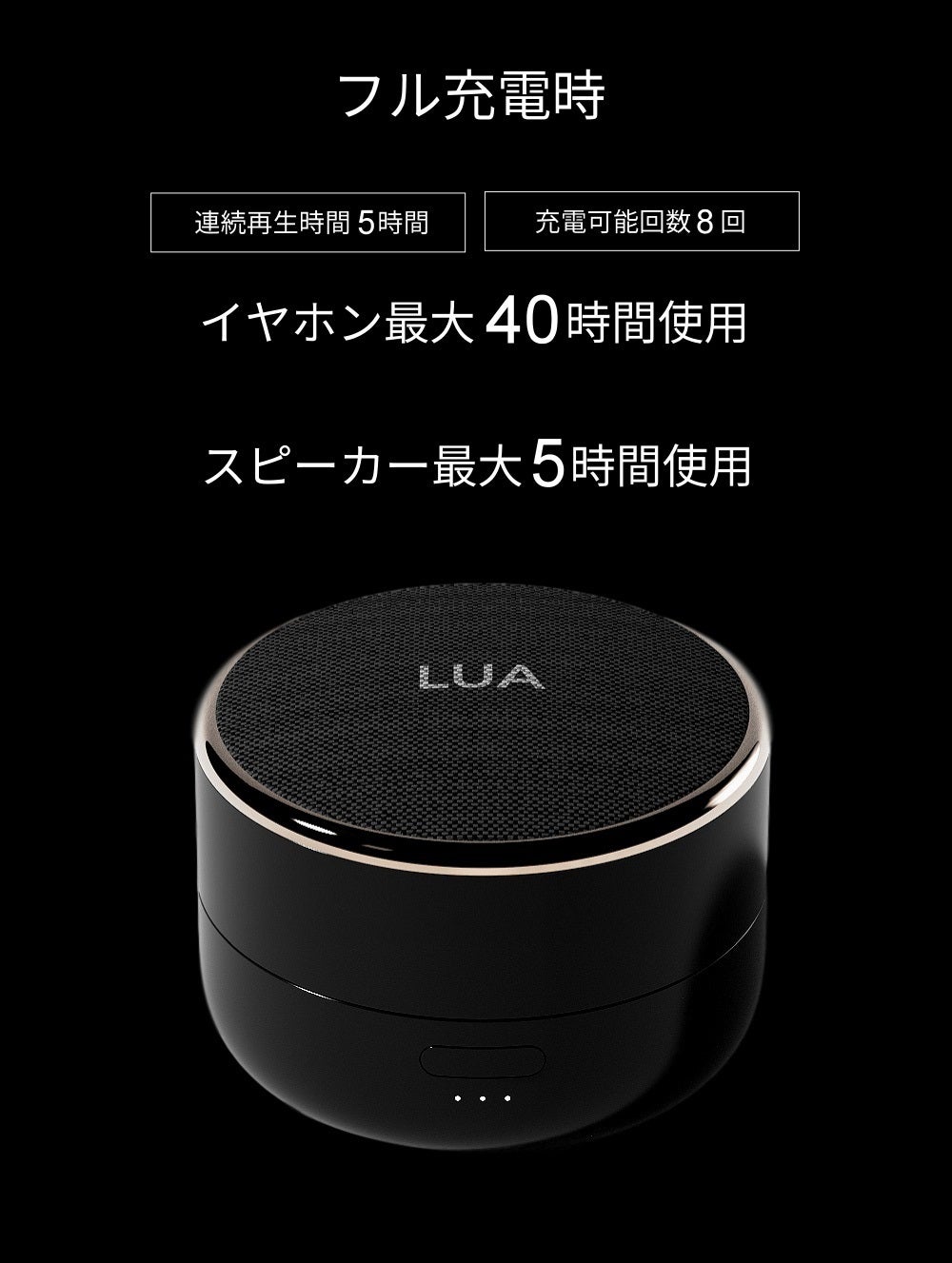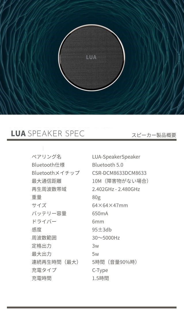 LUAスピーカーは携帯性を強調しイヤホンを含めて80グラムの超軽量設計で、いつでもどこでも携帯しやすく製作しました。 かばんの中に入れても持っているかどうかわからないほど軽量! スピーカーをイヤホン充電ケースと併用として使えるのに、この重さだと信じられますか?