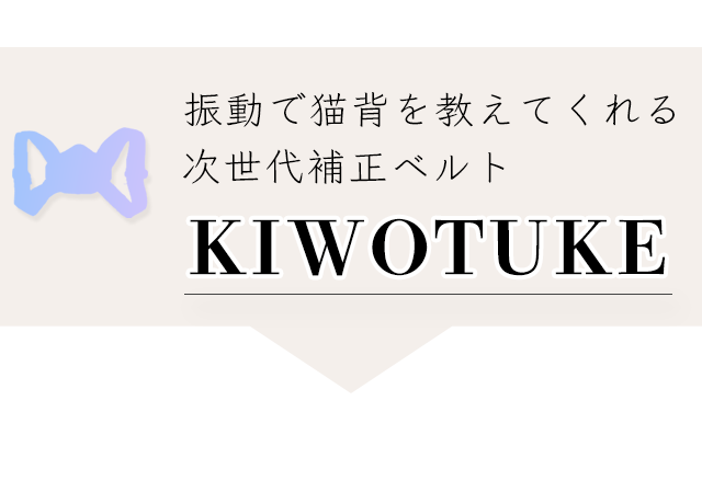 ”振動で猫背を教えてくれる次世代補正ベルトのKIWOTUKE(キヲツケ)”です。