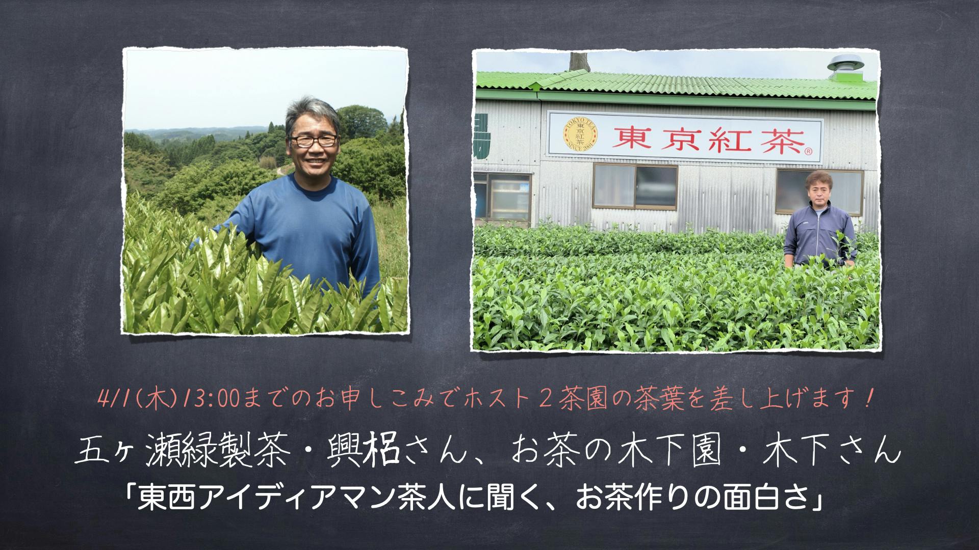 4月1日(木)13:00までにお申し込みの方にはホスト2茶園のお茶をプレゼントします!