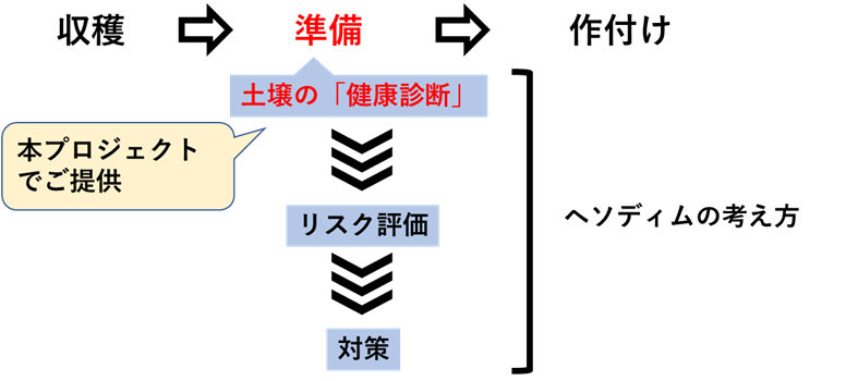 *このような予防に重点を置いた土壌病害管理の考え方は、(独)農業環境技術研究所によってヘソディム(Health checkup based Soil-borne Disease Management)というものにまとめられています。これは「診断」「評価」「対策」をセットにした考え方ですので、ご興味のある方はそちらも調べてみてください。