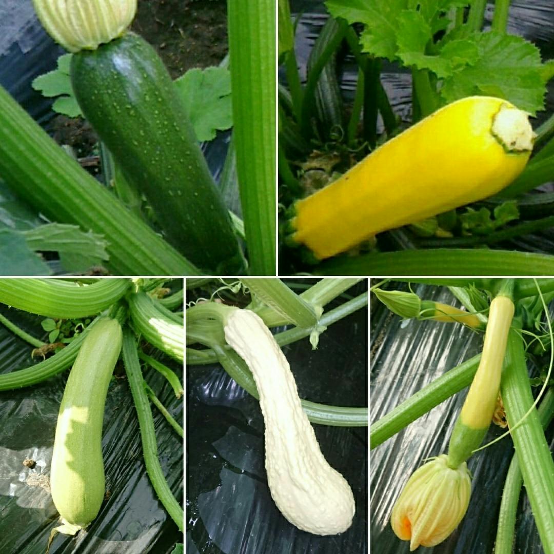 色んな種類のズッキーニ、丸ズッキーニ、花ズッキーニなどがあります。