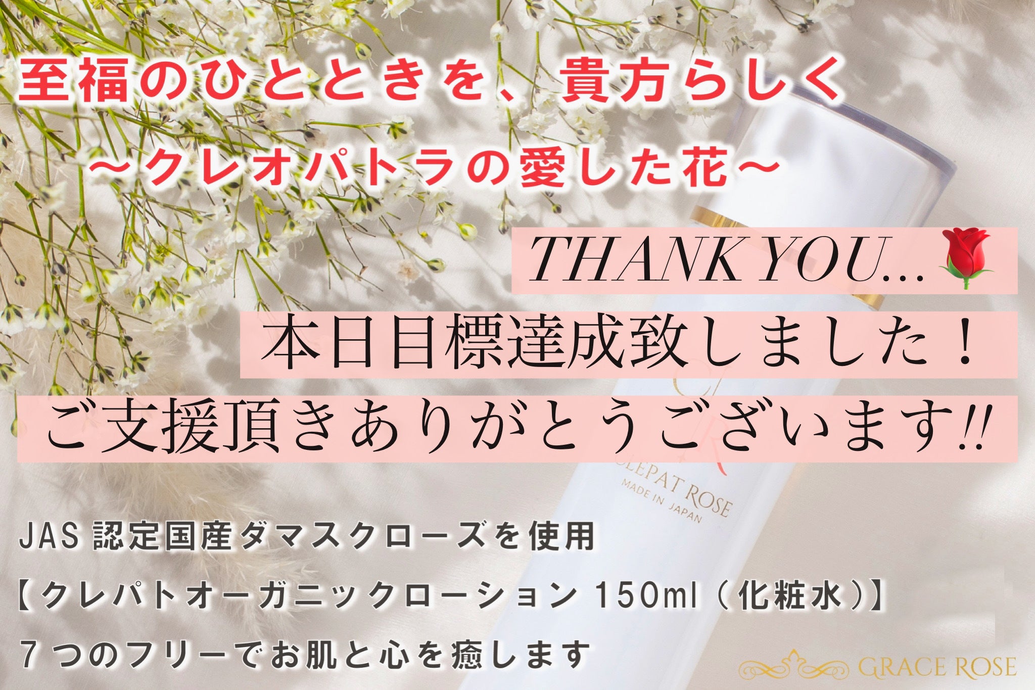 2021/04/01 16:00【目標の金額10万円達成致しました!】プロジェクトオーナーの村地です。この度は、本プロジェクトにご支援頂きましてありがとうございます。3月15日からクラウドファンディングを開始し、皆様からのご支援により、28日を残して達成することができました。本当に本当に、ありがとうございます!世間はこのような状況の中、前向きに進むことが出来ているのも皆様に支えて頂いているおかげです。頂いたメッセージは全て読ませて頂いております。お届けまで、お待ち頂くこととなりますが、もう暫くお待ちください!また、この度クラウドファンディングへご支援頂いた方へは完成いたしましたクレパトオーガニックローションのリーフレットも同封予定となっております。【ネクストゴールについて】残り28日間の新たなる目標として、ネクストゴール15万円に挑戦したいと思います。応援してくださる皆様、どうかこのプロジェクトを周りの方やSNSにて拡散して頂き、より多くの人に国産のダマスクローズ の魅力を知って頂けるようお願い致します。私達も、クレパトローズの魅力をお伝えするために邁進いたしますのでどうぞ、引き続きよろしくお願い致します! もっと見る