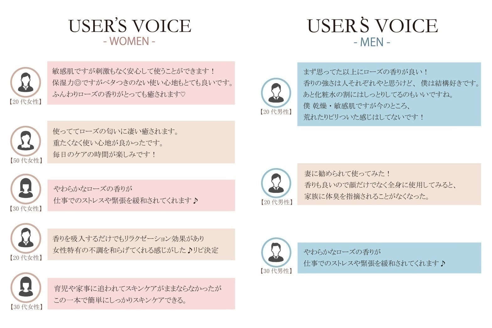 国産ダマスクローズだけを使って出来たダマスクバラ花水とダマスクバラ花油は肌馴染みも良く、配合成分の4つのヒアルロン酸により保湿効果があります。