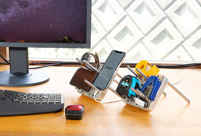 【OMO-TAI(オモタイ)】は“デバイスや小物を縦置きして収納する”という画期的なアイデアから生まれた三次元収納ツールです。