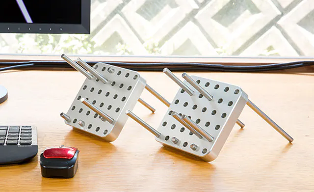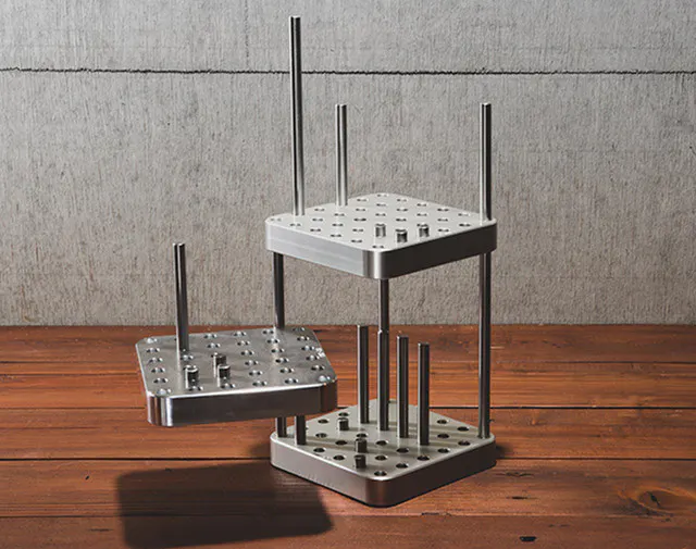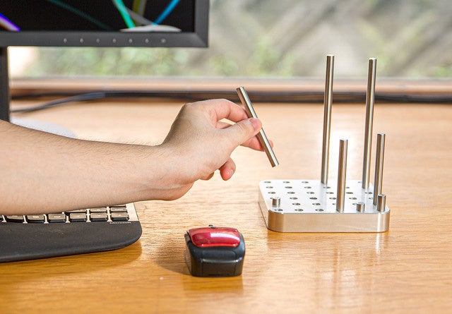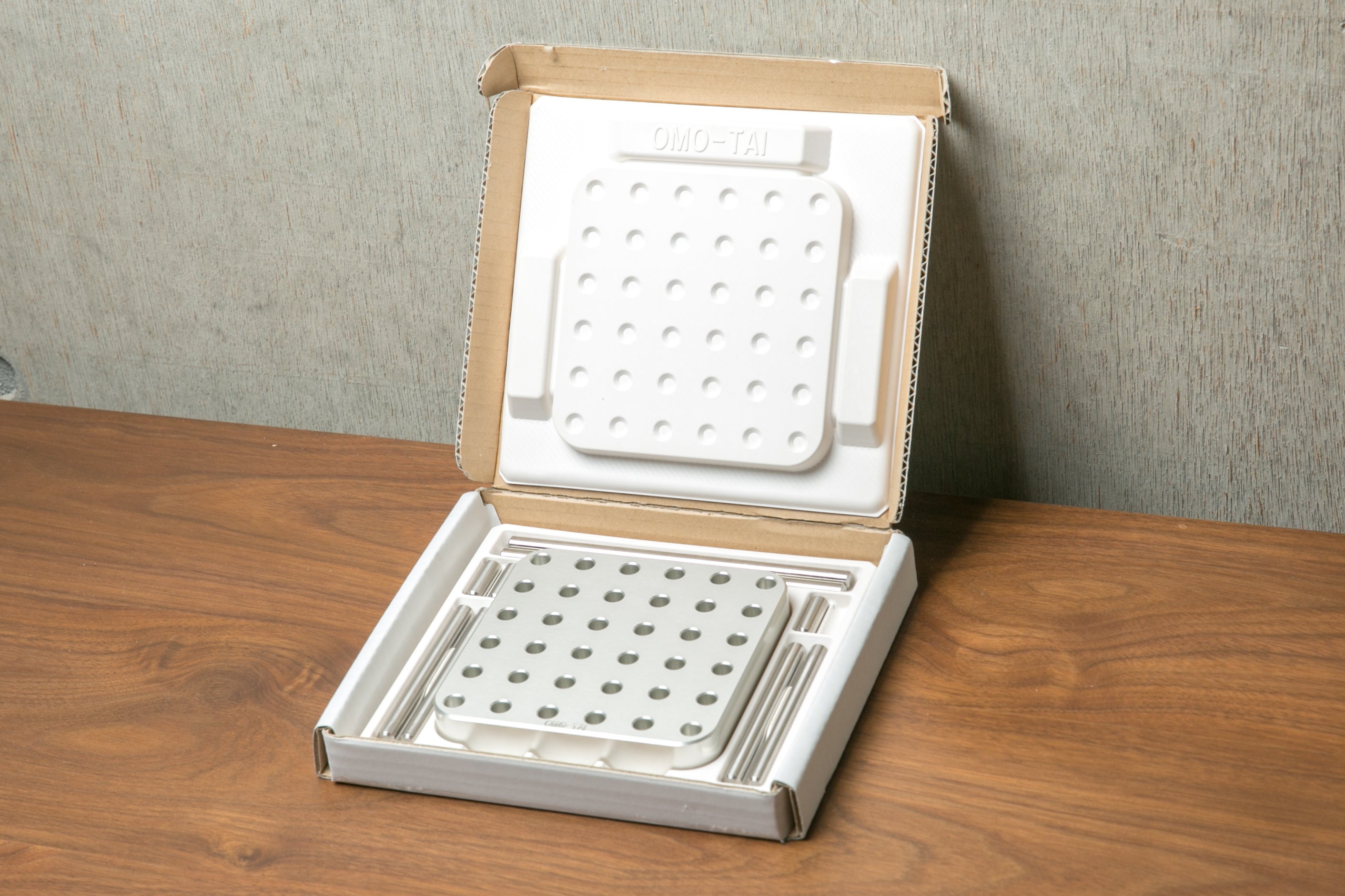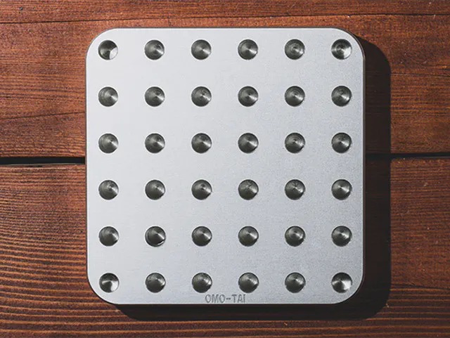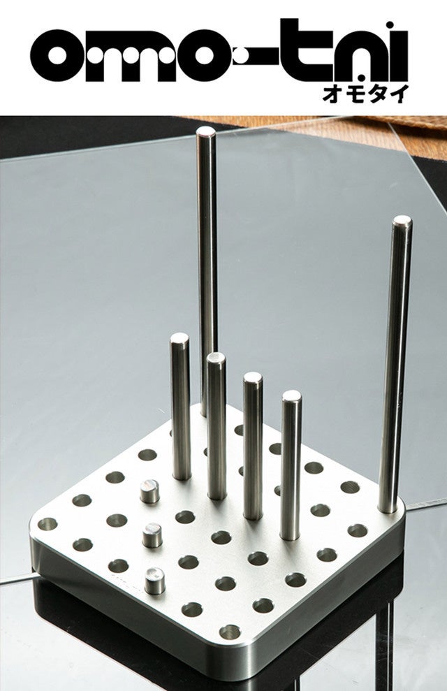 どっしりと重く安定感ある【OMO-TAI】の本体には36個の穴が開いており、付属の3種類の長さのバーを自由に設置してカスタマイズ可能です。