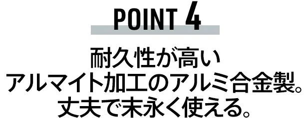【OMO-TAI】は、本体部分に丈夫で耐久性の高いアルミ合金を使用。