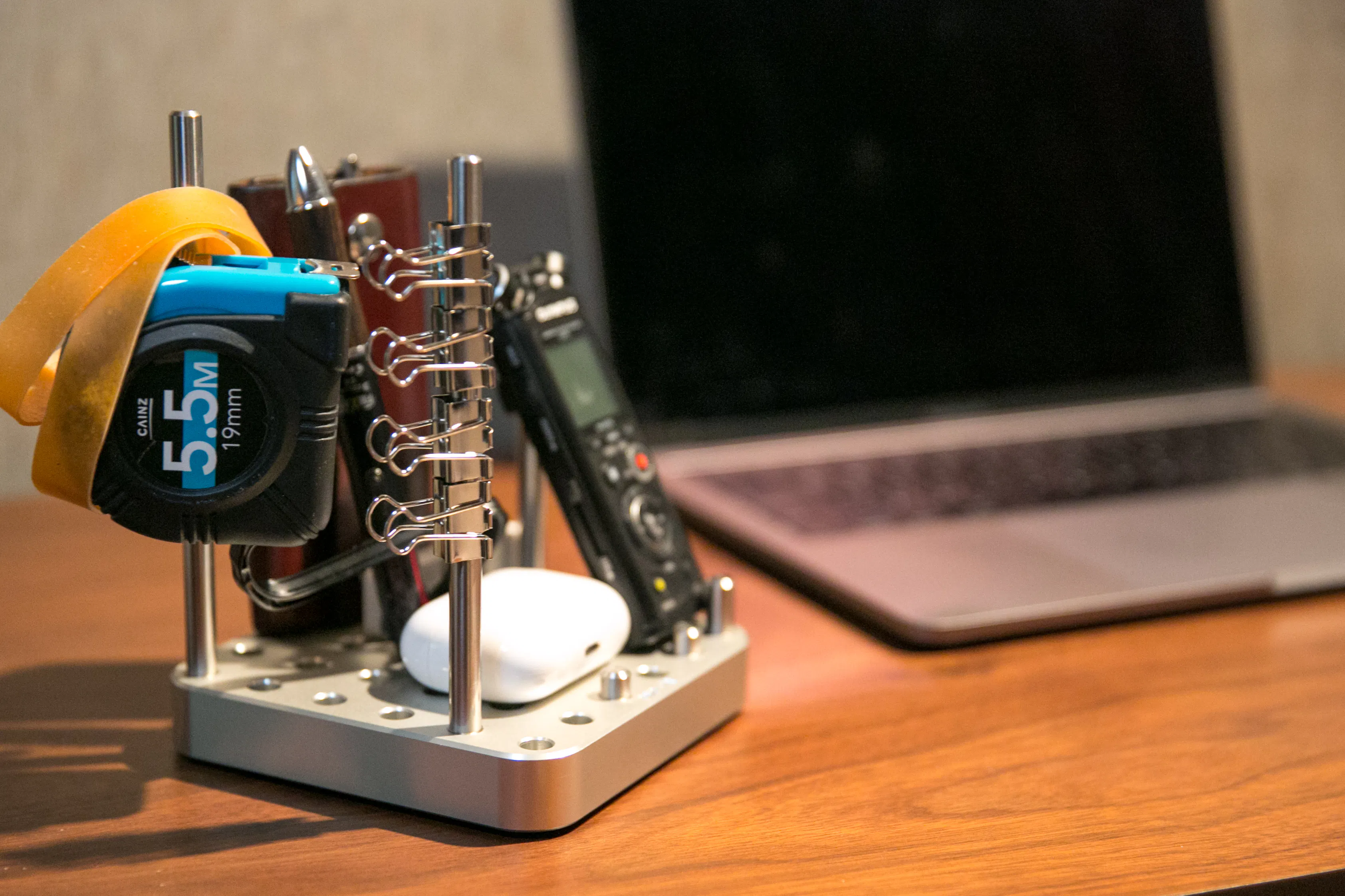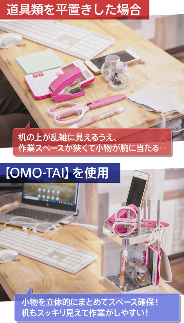 【OMO-TAI】で道具類をまとめて「縦置き」することで、机の上がこんなにスッキリ!