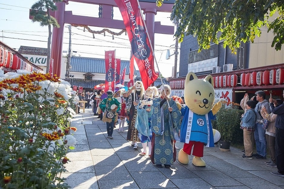 笠間の町を練り歩く狐の行列や、稲荷の神様をお祝いするセレモニーなどを実施しています。