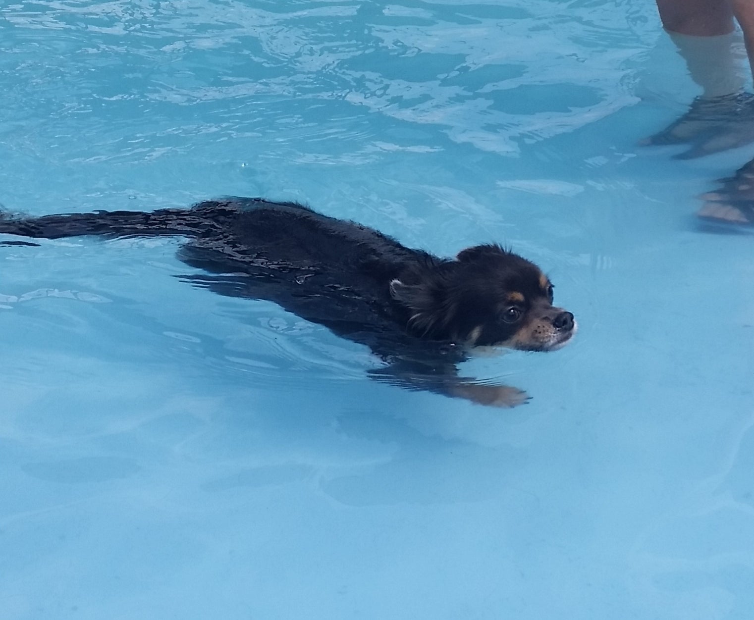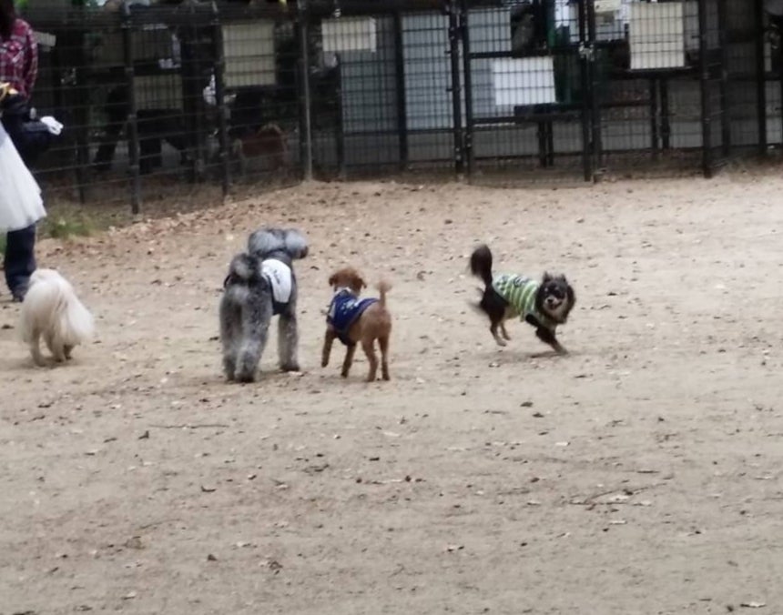 夏はドッグランのプールにも入りました。周りの子達を見てるいると、泳げている子も居れば水を沢山飲んでしまい嘔吐しちゃう子もいました。初めてのプールなので泳げるとは思って無かったのですが、恐る恐る入ってみると普通に泳いでました(笑)