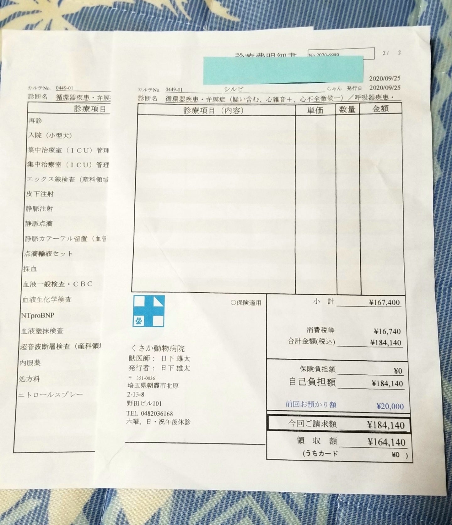 これまでの闘病生活で2ヶ月毎に通院で診察、薬(2ヶ月分)、エコー検査、血液検査(4ヶ月毎)。約4~5万