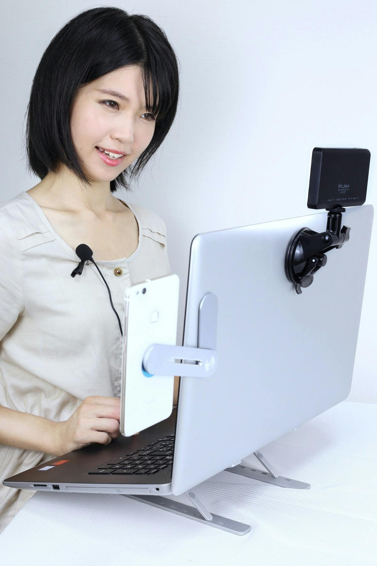 LEDライト, ピンマイクシステム, ラップトップスタンド, ラップトップ スマートフォンホルダーの4点
