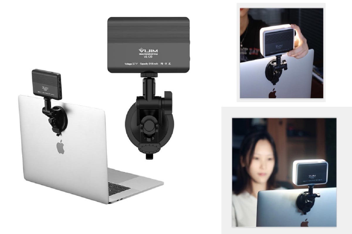 4アイテムの商品を一つずつ紹介させて頂きます。まず、顔全体が暗く映ってしまう事を解決する照明、LEDライトの紹介です。今回、おそらく他ではない仕様だと思いますが、吸盤でラップトップの裏面に装着できるライトをご紹介します。もちろん、取り外しも簡単にできます。通常は、ラップトップ上に付けっぱなしにしておいても大丈夫です。強力な粘着力がありますので、脱落する事はありません。