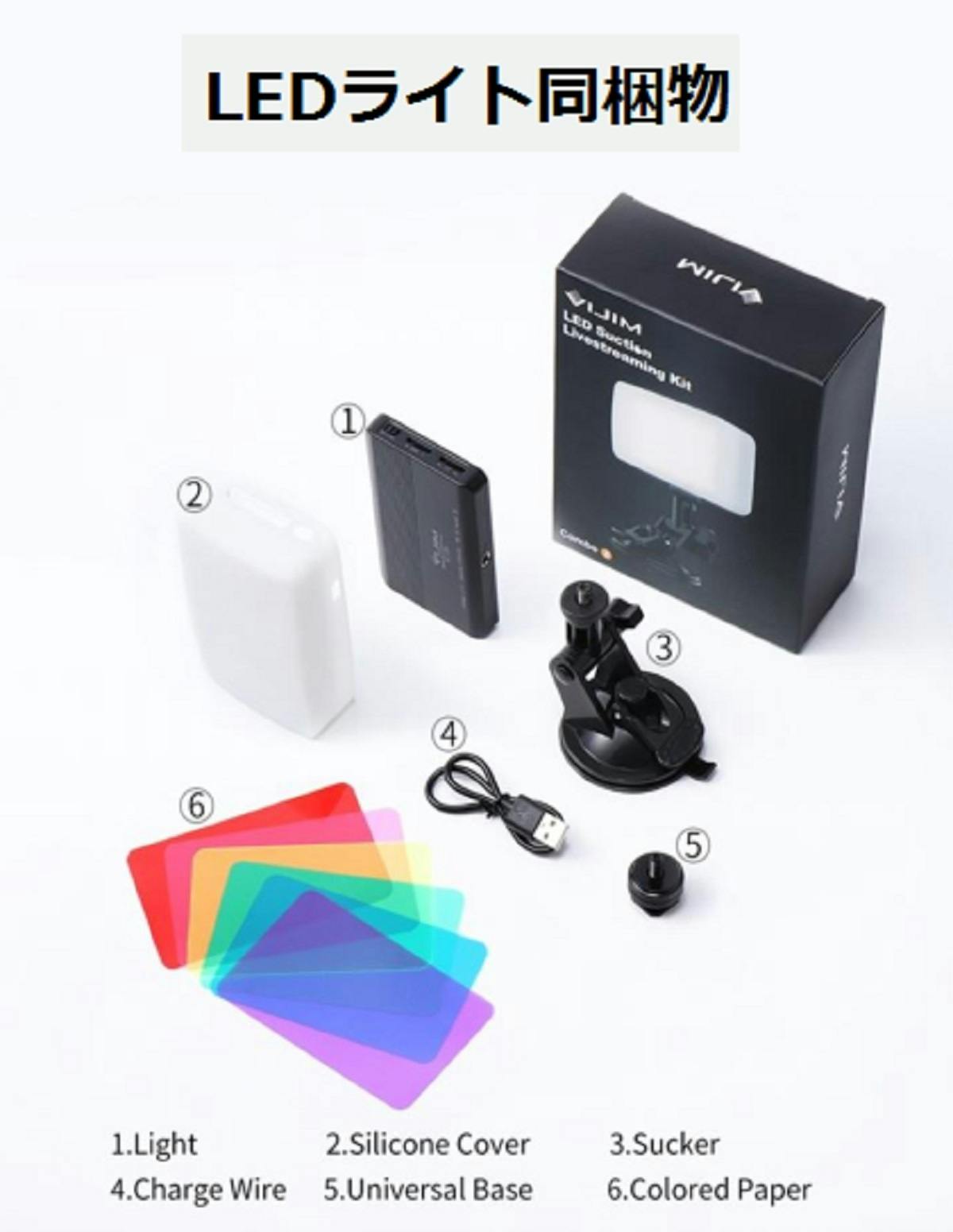 LEDライトは、通常 目視すると、非常にまぶしく感じますが、シリコン製のカバー(Diffuser)を同梱しており、これを装着し、やわらかな光に変換する事ができます。下写真の②がそのカバーです。明るさ調整もノーステップで可能です。