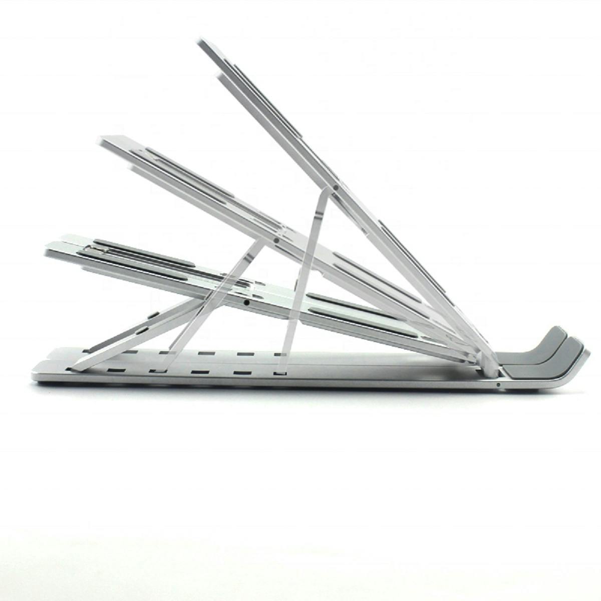 ラップトップスタンドについて、紹介します。6段階で角度調整が可能で、ラップトップ画面上部のカメラ位置を最適な高さに設定する事ができます。折り畳みが可能で、容易に持ち運べるタイプです。