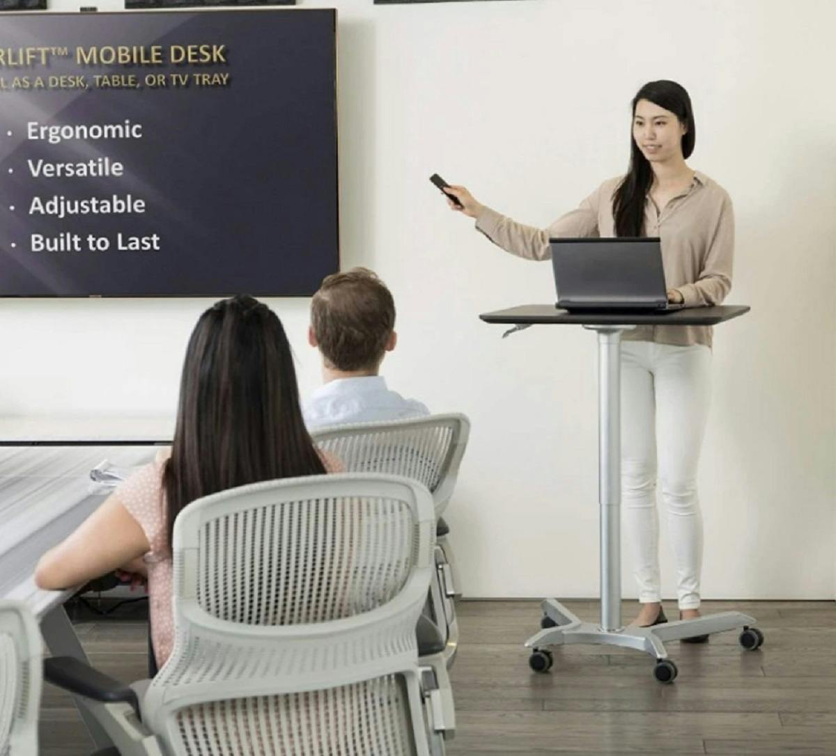 4アイテムのベーシックキットとは別に、オプションアイテムを2種類準備しました。長時間、同じ所に座ってパソコンを操作するのはとても疲れる作業です。時間を区切ってスタンディング立作業、或は場所を移動して作業しては如何でしょうか? 気分が変わり、集中力が増す事が期待できます。まず一つ目、移動式で高さ調整もできるラップトップカートの紹介です。