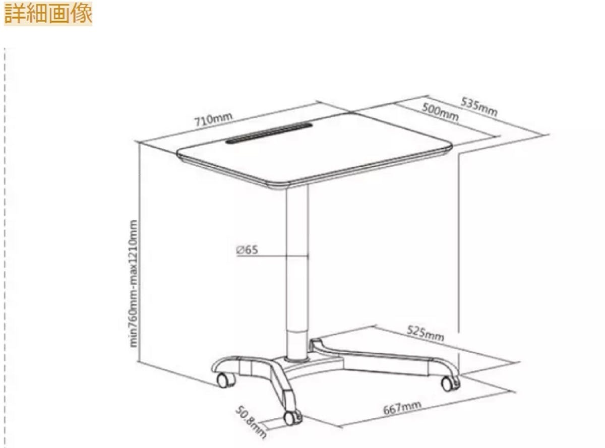 最後に2つ目のオプションアイテムの紹介です。カートと同じく高さ調整が可能なラップトップスタンドデスクです。移動はできませんが、高さを任意の高さで調整・固定する事ができます。