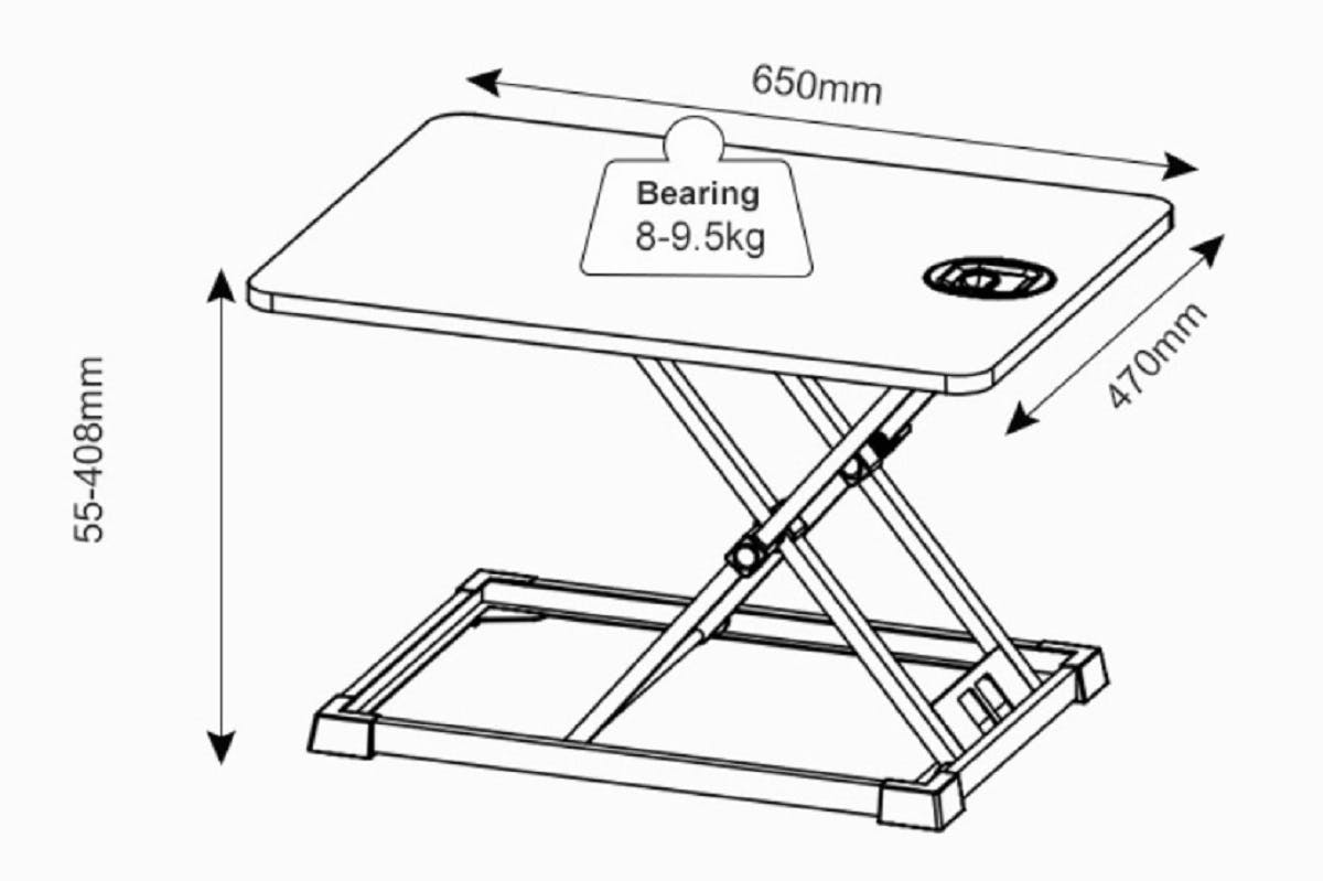 身長に応じて任意の高さで固定する事ができます。本体重量 14Kg,テーブル部の耐荷重 約80Kgです。