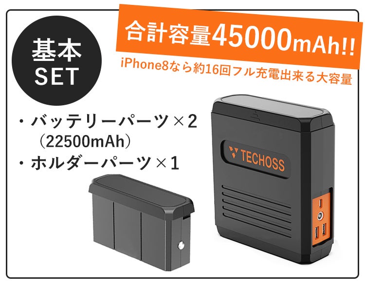 ▶ 合計45,000mAh分(22500mAh×2)のバッテリーが付属する大容量セット!