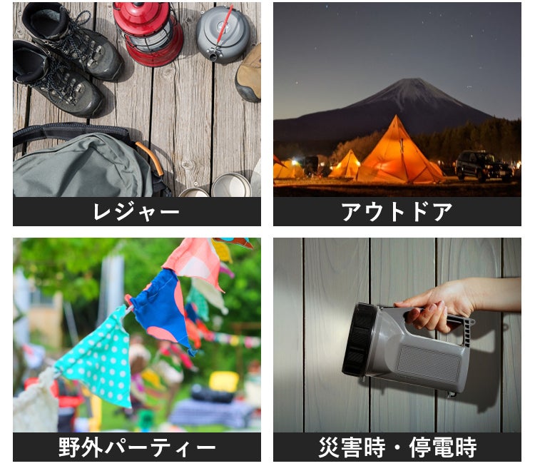 レジャーやアウトドア、野外パーティーなど、電源の無い環境でも、パソコンはもちろん、小型冷蔵庫やカメラなど、様々なアイテムへの給電・充電が可能に。