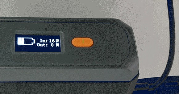 本体上部には、液晶モニターが搭載されており、充電残量をはじめ、電気の入出力状態(W)、電流の状態(AC/DC)が確認できます。正しく充電がされているか、一目瞭然!