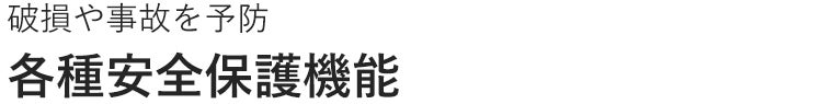 ▶ 各種安全保護機能搭載。万が一の事故や破損を予防。