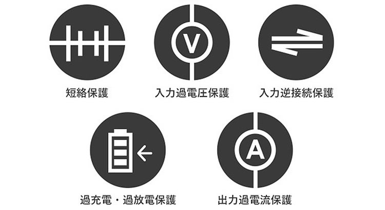 ・過充電・過放電保護…満充電を超えての充電、放電終止電圧を超えての放電を防止