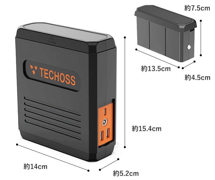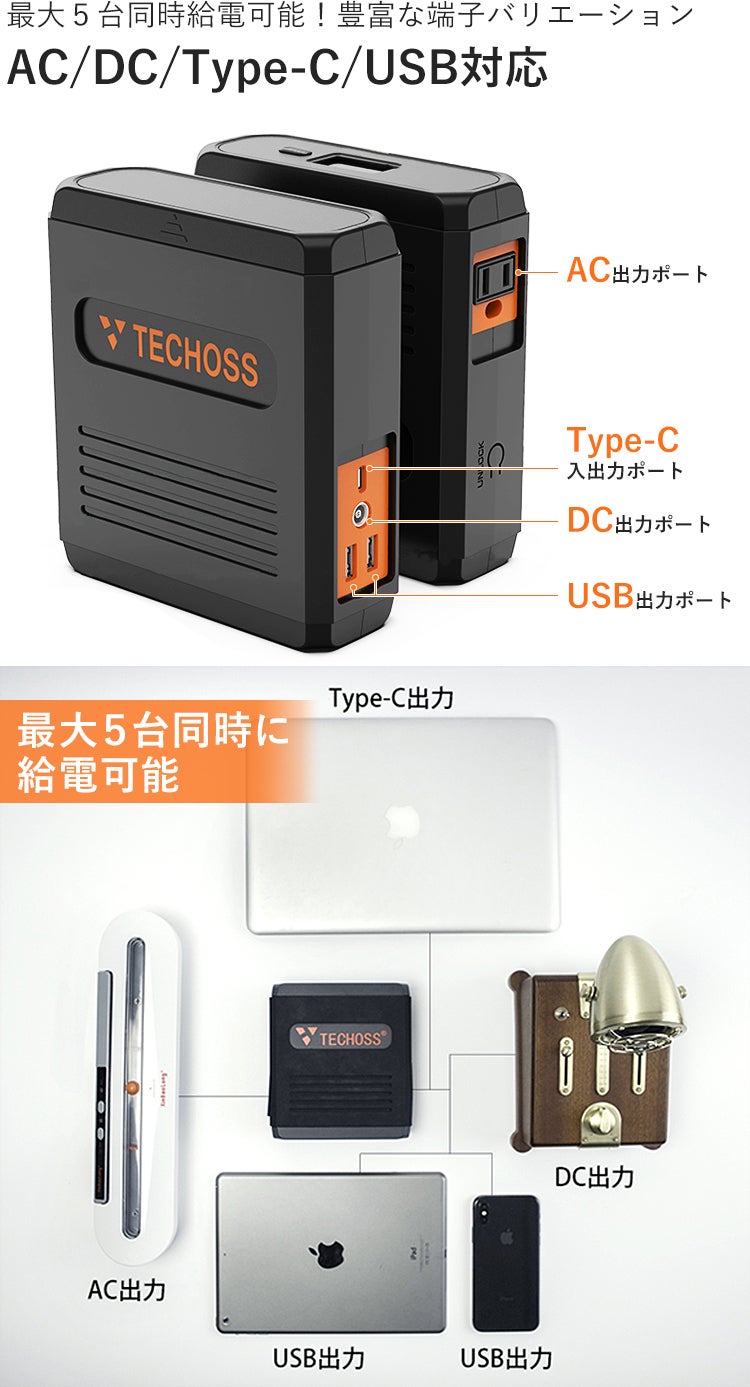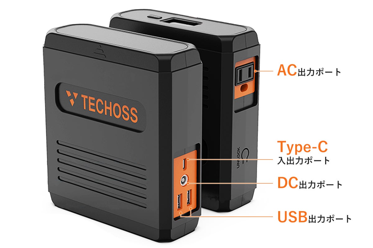 AC/DC出力対応・超小型ポータブル電源「TECHOSS(テコス)」