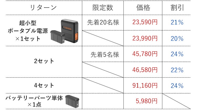 (※バッテリーパーツ単体のリターンは除く)