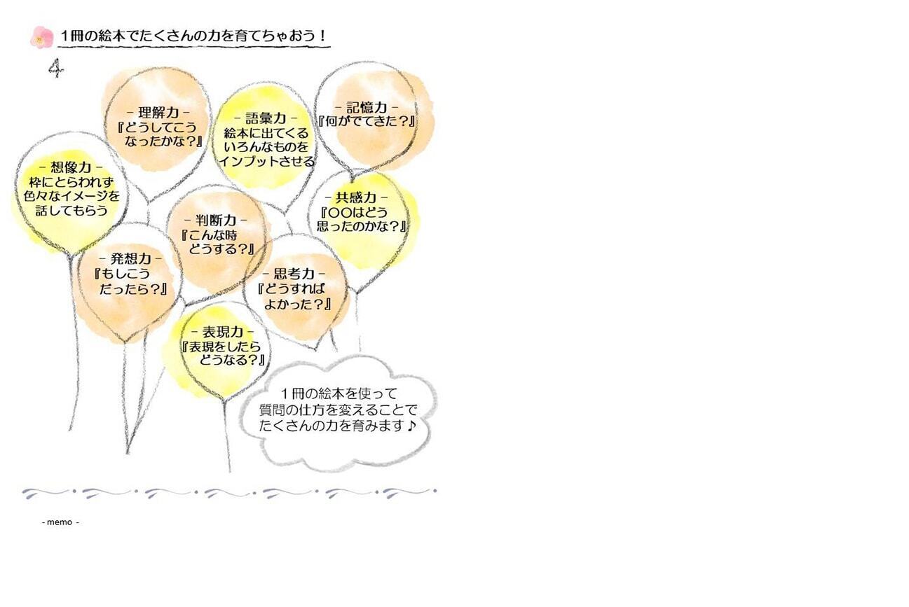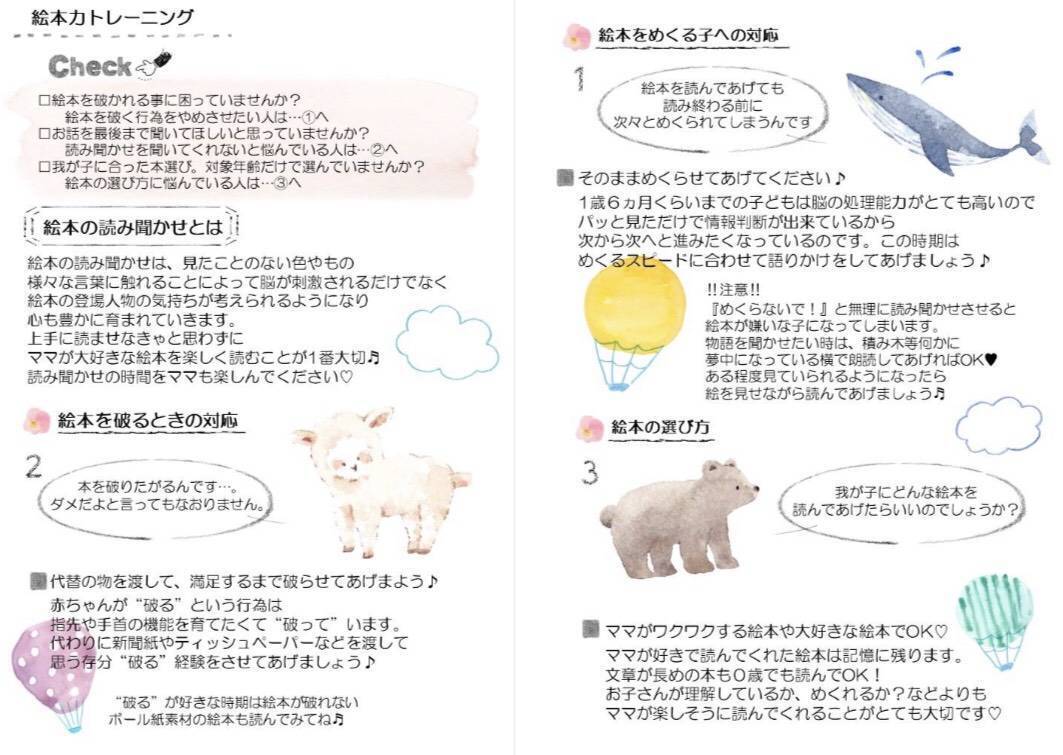 「絵本を破るときの対応」や「絵本の選び方」、様々な力を育む「質問の仕方」をご紹介しています。