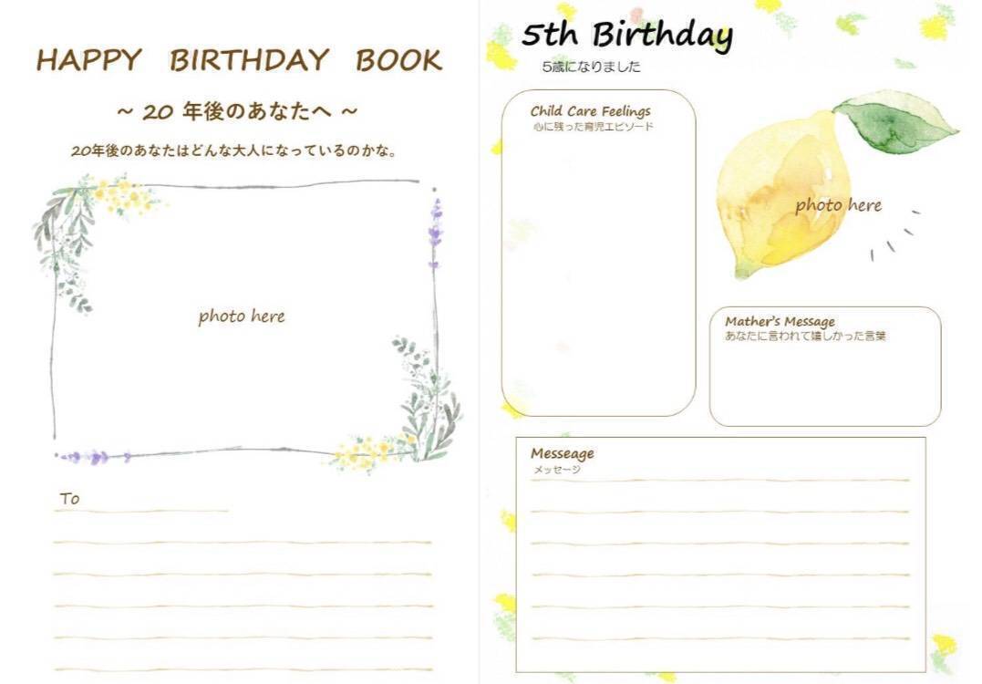 1年に1度お子さんの誕生日には開いてもらえるように願いを込めて作ったページです。