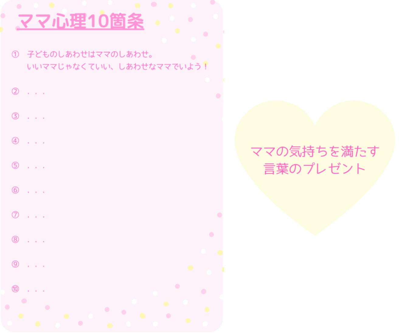 そう!子どもを受け入れて子育てする為には、まずはママの心が満たされていることが先と感じ、そのポイントを盛り込みました。